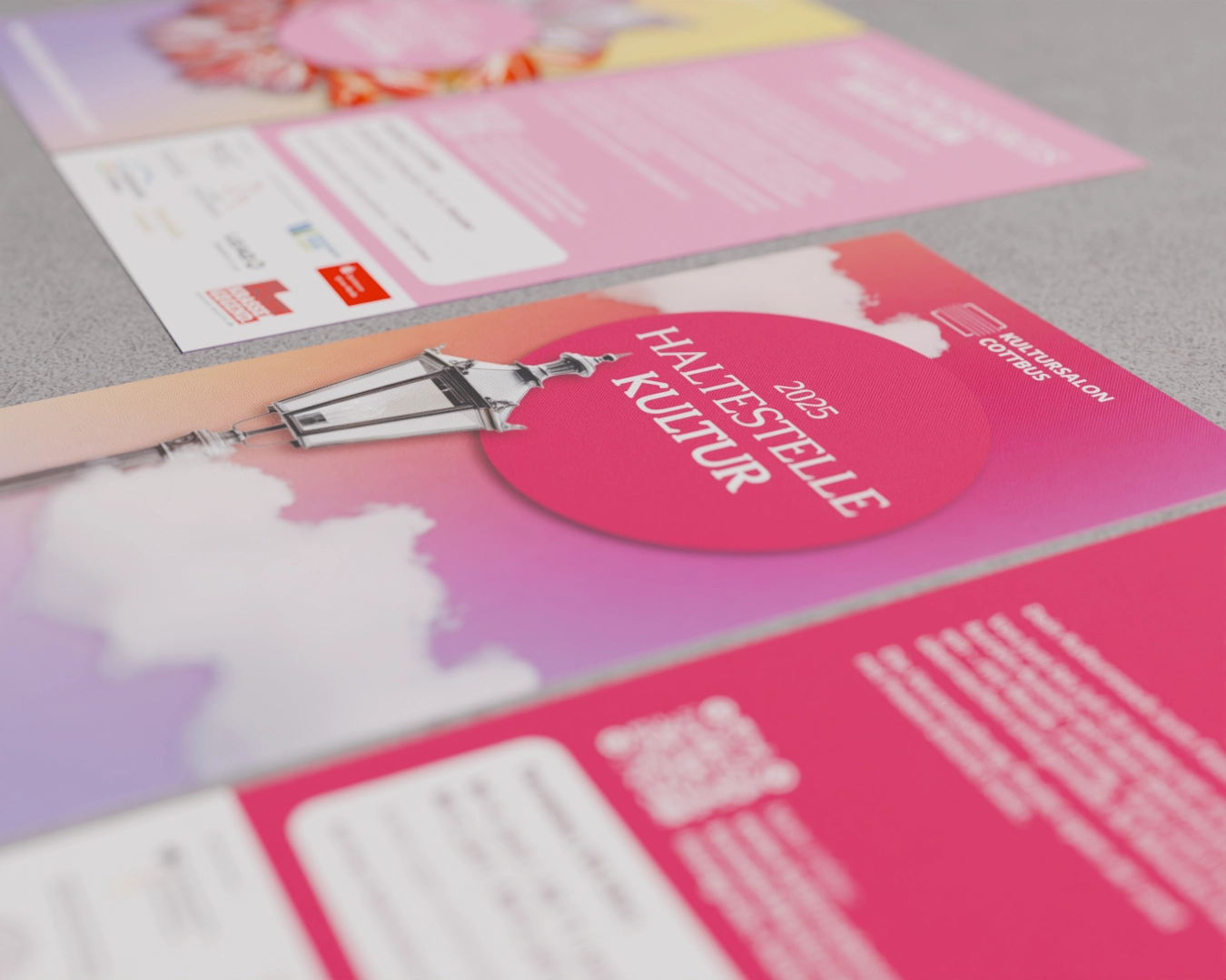 Visuelles Erscheinungsbild für die Veranstaltungsreihen »Freundeskreis« und »Haltestellte« in Cottbus.